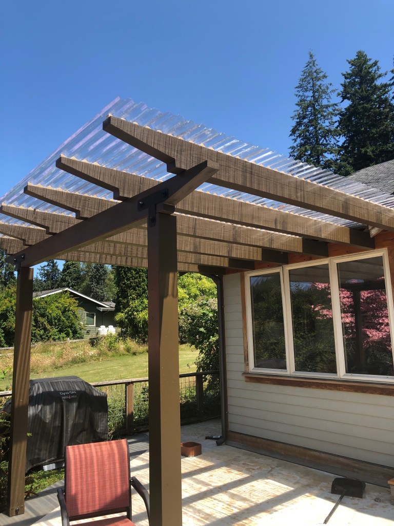 This project was fun. Replaced the beam and shaved off the plant debris. Repainted and installed PVC roofing.