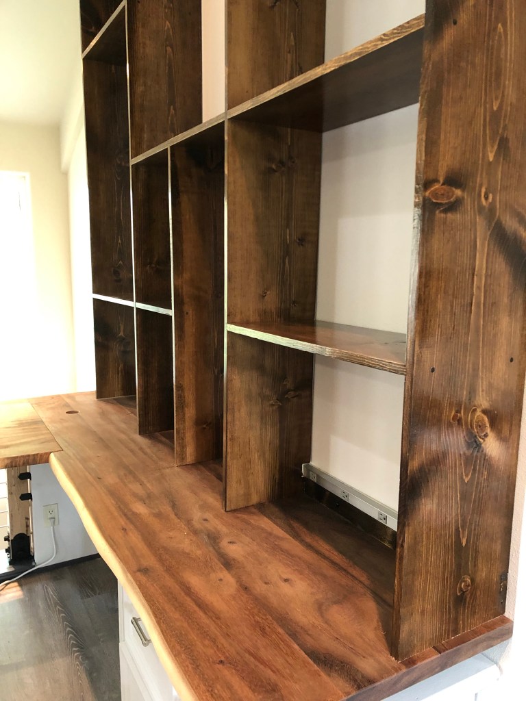 Followed the schematic for the bookcase. Used wooden dowel kit to assemble the bookcase. Stained the softwood.